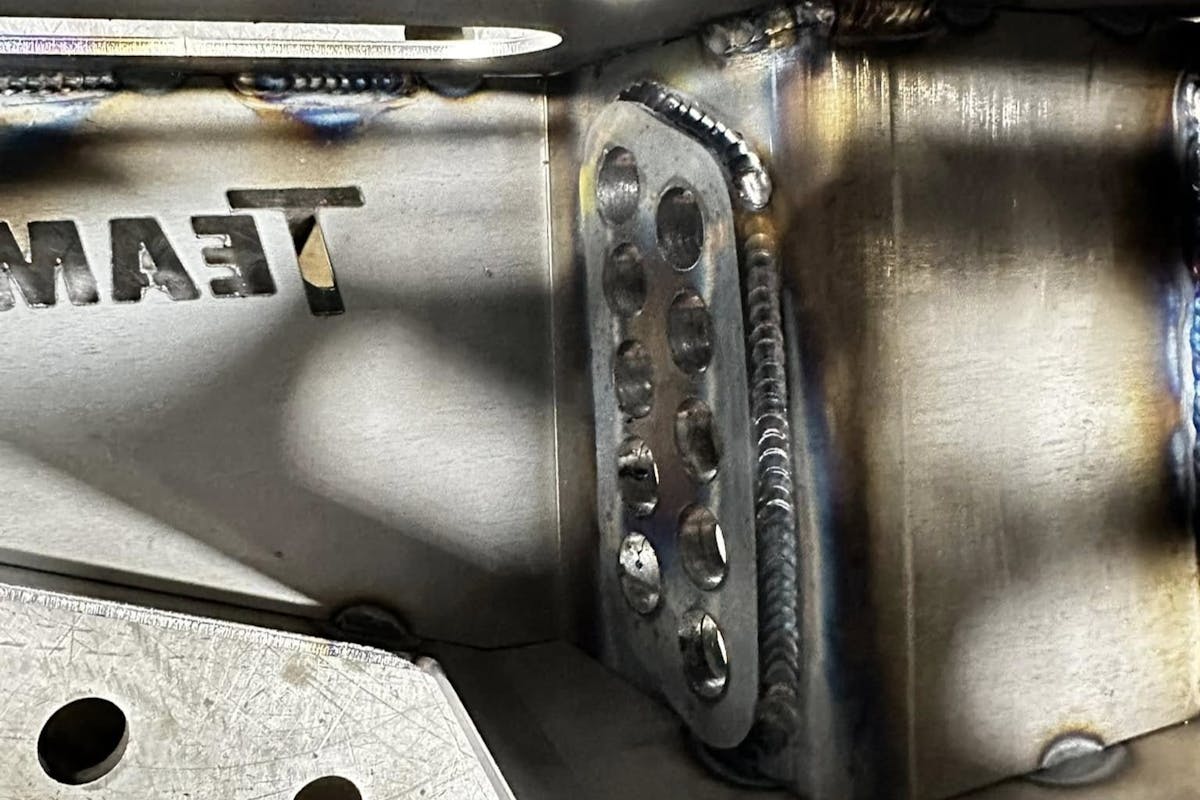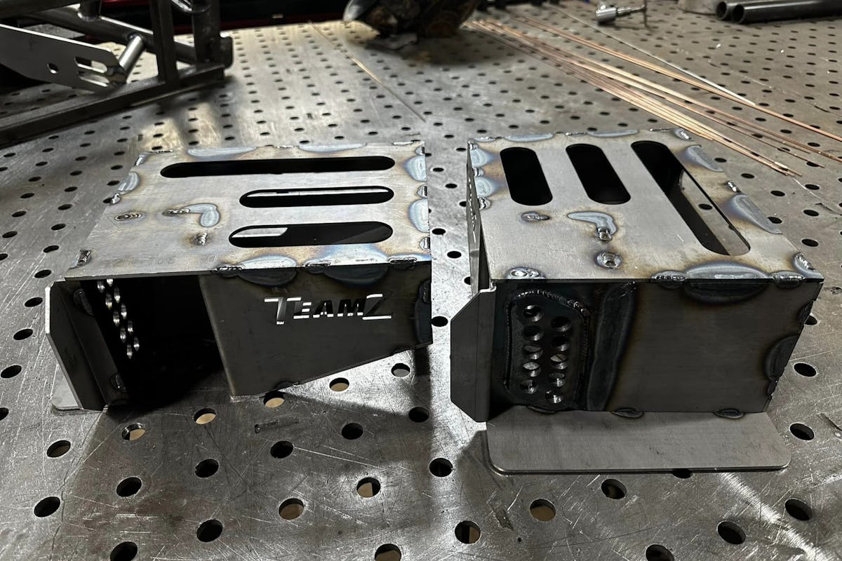 This kit directly replaces the factory lower torque boxes, which is known to be a weak point. The factory parts are prone to tearing or pulling away from the body with stock power levels. Team Z Motorsports answered this concern with a heavy-duty approach. Their kit is 1/8-inch- and 3/16-inch-thick steel, reinforced with double plates for maximum resistance.