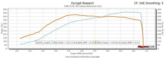“I posted two dyno graphs, one with smoothing at zero, and one with it at five so you can see that the difference is minimal,” Adam added. “The car is making smooth power.”