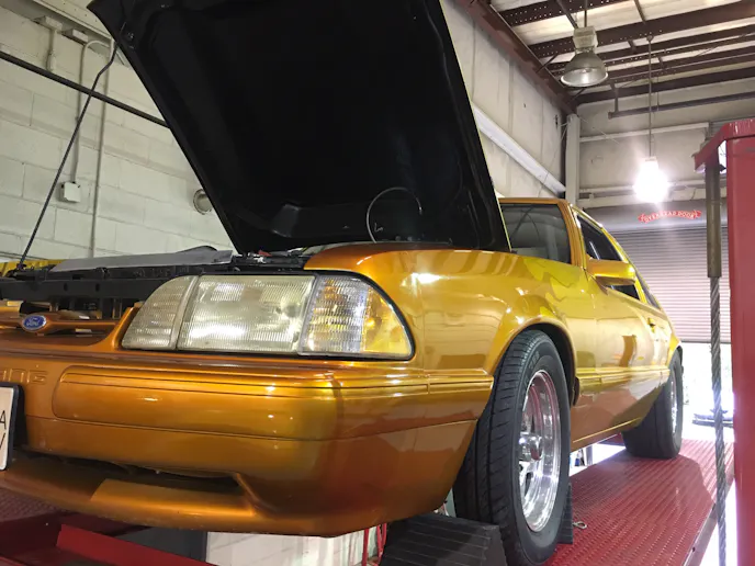 Just the other day, while browsing the book of faces (more commonly known as Facebook), a post from Silver Sport Transmissions caught my eye. Attached was a photo of a stunningly gold Fox-body notchback, clearly undergoing a transmission swap. When I read a little further, I realized that the “Gold Nugget,” as the Fox is lovingly known, is equipped with a single turbo and a stick-shift, and I wanted to know more.