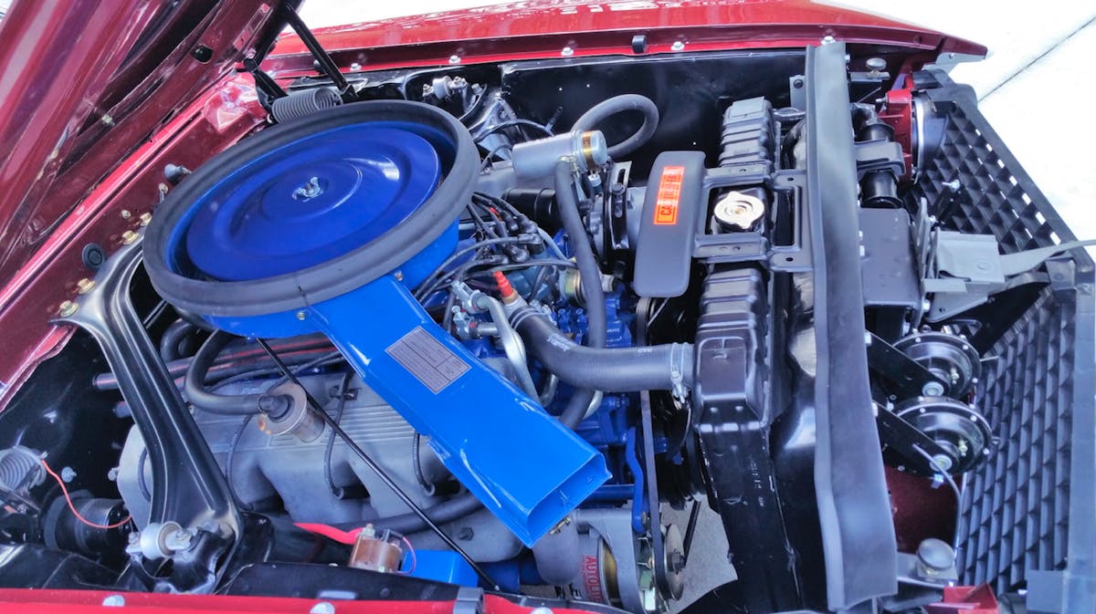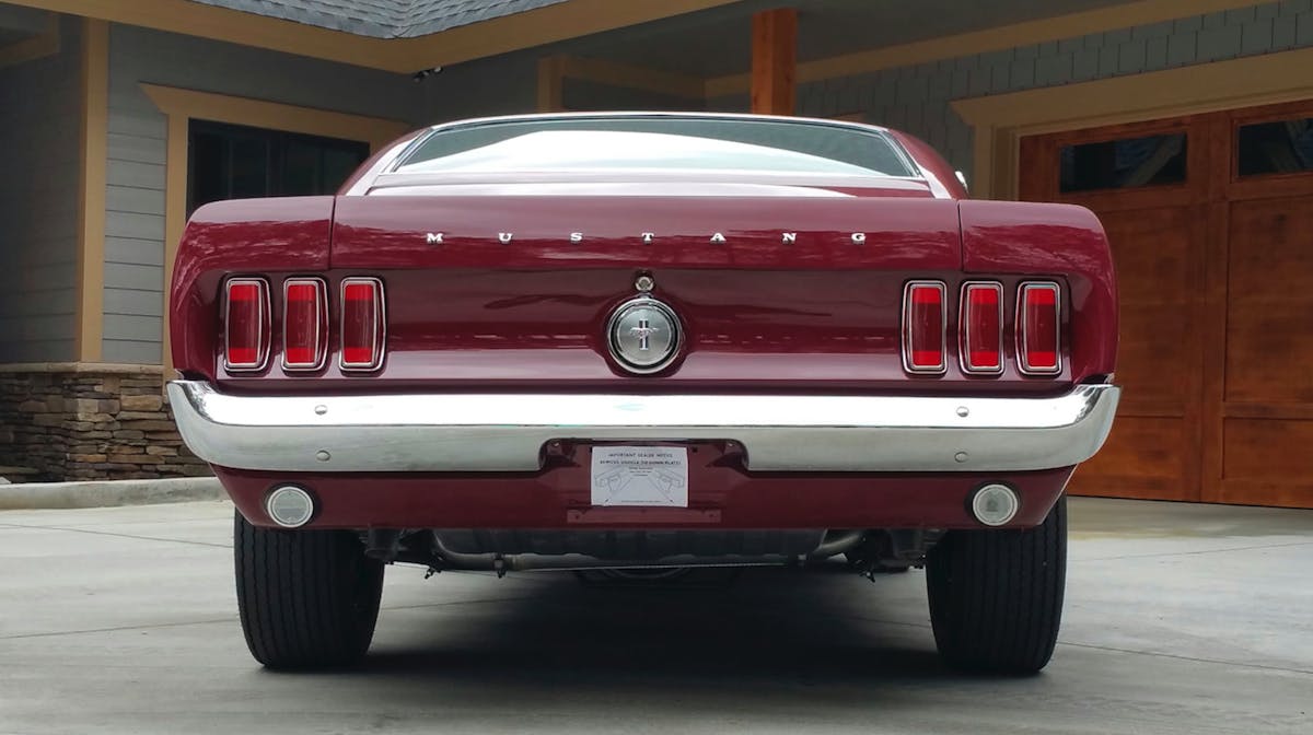 What’s more is that the factory-installed smog pump is still installed, along with a dual-point distributor, factory exhaust manifolds and a Holley carburetor. The Boss hasn’t been tampered with much either, seeing as the 1969-specific, 3/4-inch rear sway bar and transverse mufflers are still present, only adding to the value of the one-of-a-kind ’Stang.