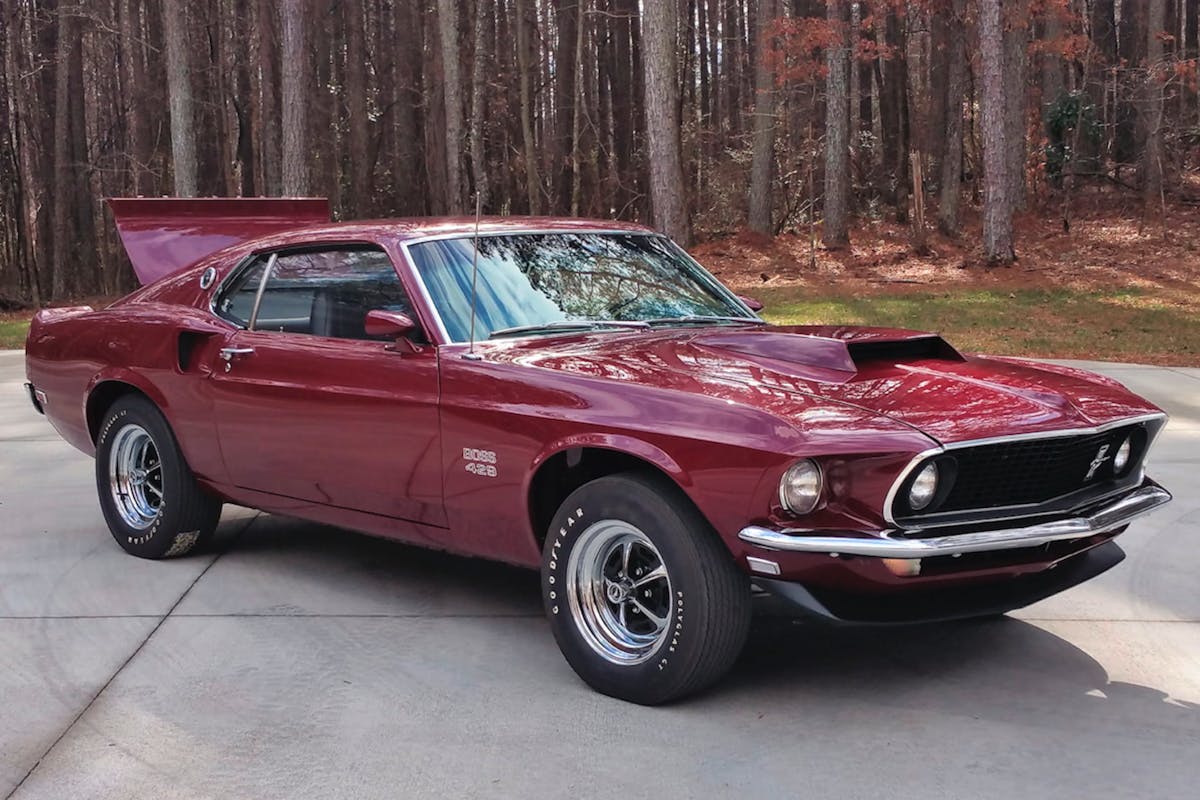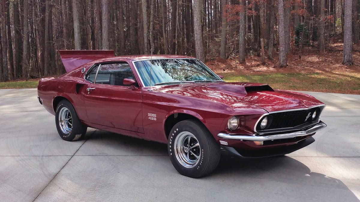 Boss 429s are some of the rarest Blue Oval pony cars ever to exist, and this low-production-number example is no exception. Finished in its Royal Maroon hue, this 1969 Boss Nine wears KK no. 1390, which means its a February-built car. It was the 189th example produced, making it an ultra-low production-number model.