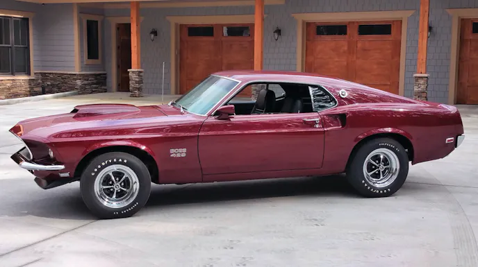 Boss 429s are some of the rarest Blue Oval pony cars ever to exist, and this low-production-number example is no exception. Finished in its Royal Maroon hue, this 1969 Boss Nine wears KK no. 1390, which means its a February-built car. It was the 189th example produced, making it an ultra-low production-number model.