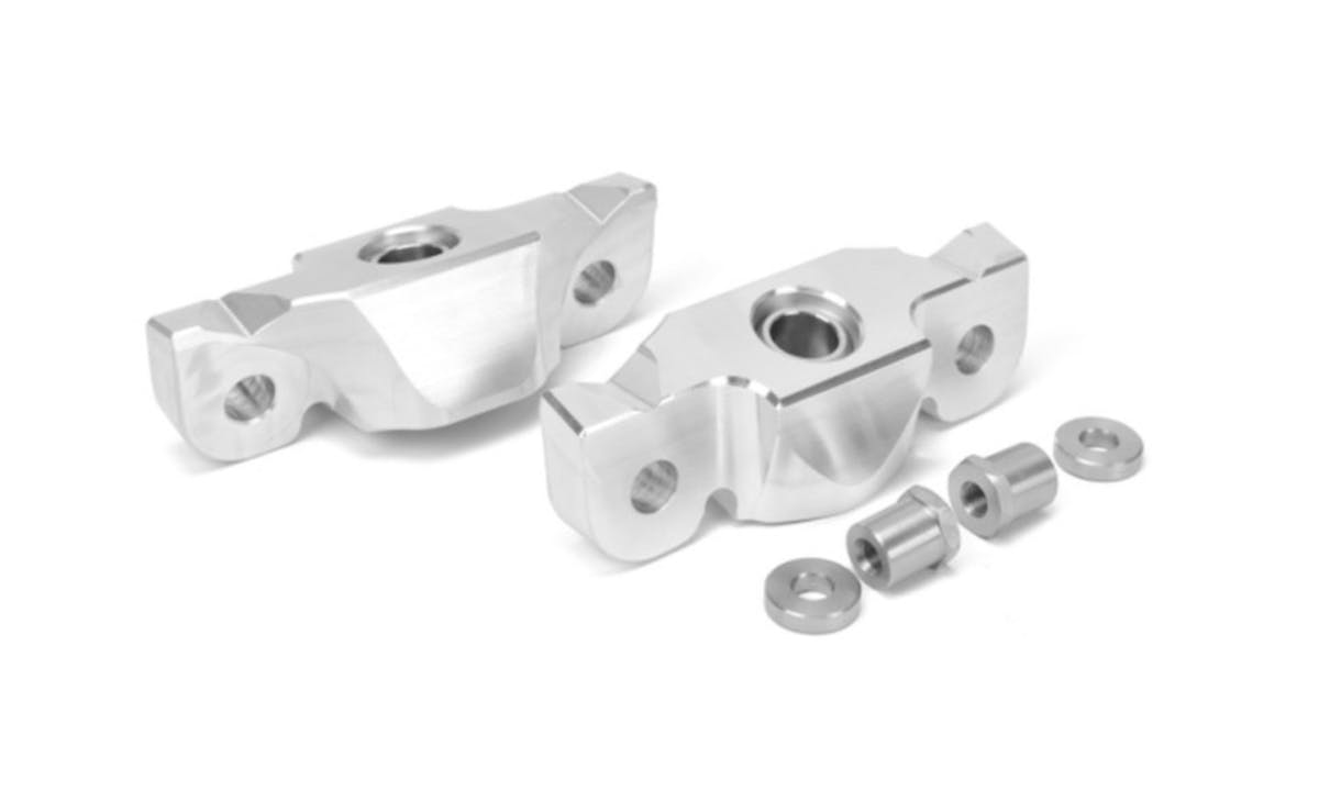 The factory upper shock mount on the S550 has been a known failure point once people started lowering them and replacing the stock shocks. The UPR Billet Upper Shock Mounts are a bolt-in replacement that eliminates the weak points and features a chrome moly spherical bearing to stop vertical deflection that occurs in the rubber bushing in the stock mount.