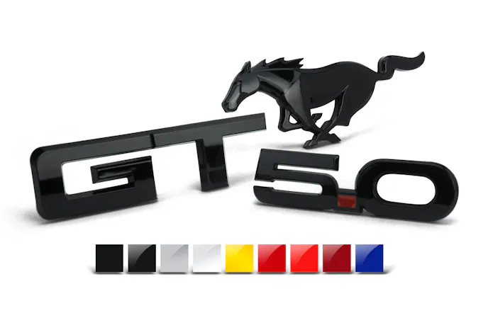 - Package includes one rear GT emblem, 2 fender 5.0L emblems, and one front pony emblem