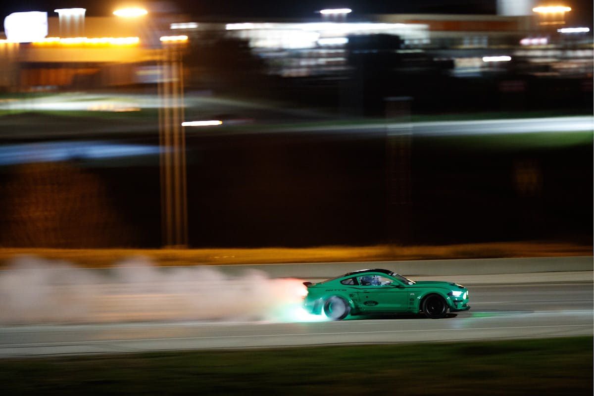 They say everything is bigger in Texas, so when the man whose moniker is the “Professional Fun Haver” wanted to go big for St. Patrick’s Day, it’s no surprise he headed for the Lone Star State. There local authorities closed off all four ramps of a highway’s cloverleaf for an insane drift in his 900-horsepower Mustang RTR.