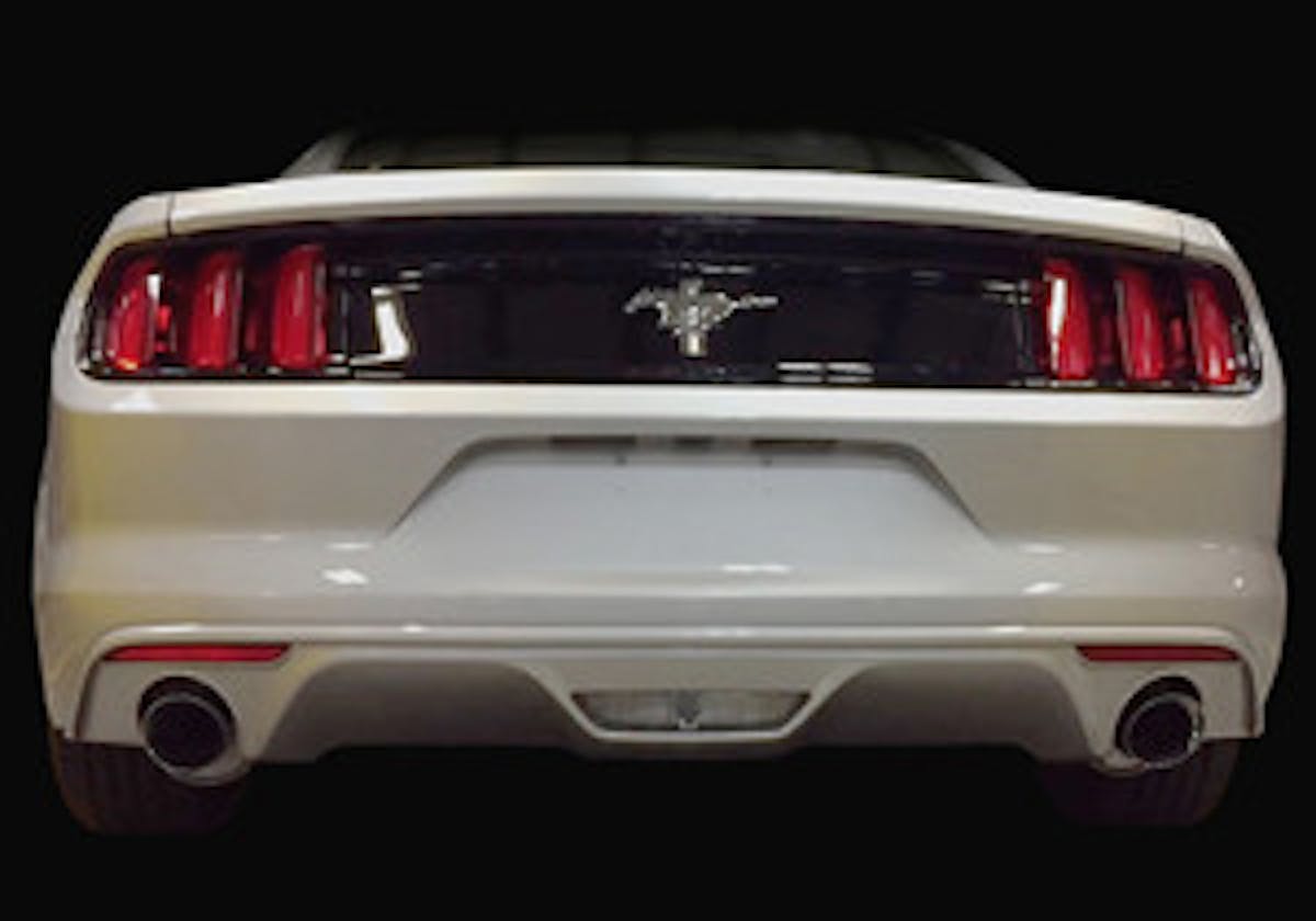 The ROUSH exhaust is what we’d term an axle-back. It’s made from corrosion resistant T-304 stainless steel, and features four-inch tips to fill the gaping space in the rear valance that Ford obviously left there so the aftermarket could do something with it. The exhaust tubing is mandrel bent, and also uses OEM mounting points.