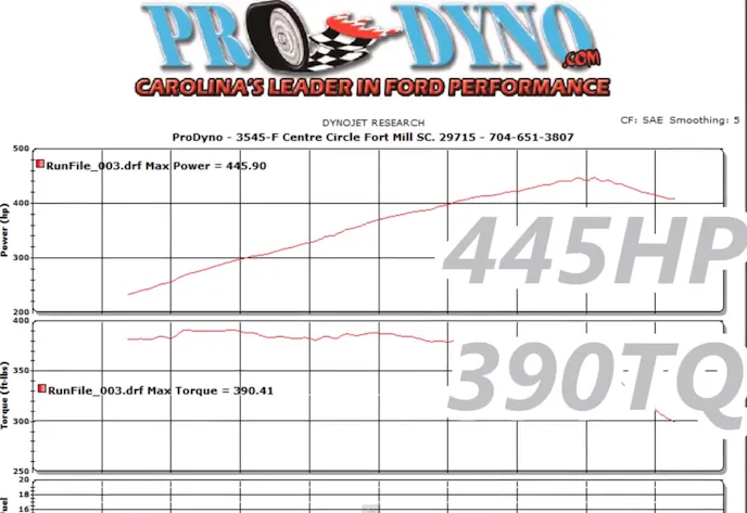 Pro Dyno baselined the car at 379.8 hp and 364.2 lb-ft of torque at the rear tires. After it was done the car was putting down 445.9 hp and 390.4 lb-ft. While the CAI and tune no doubt helped some, there’s a lot to be said for the gains from the long tubes. In all this was a total gain of 67.1 hp and 26.2 lb-ft. Not bad for these mods, and certainly a strong naturally aspirated contender.