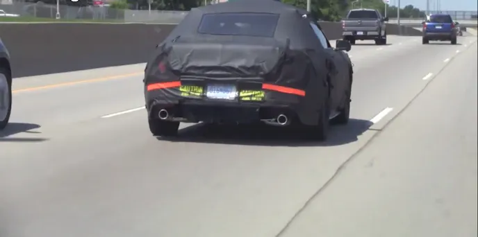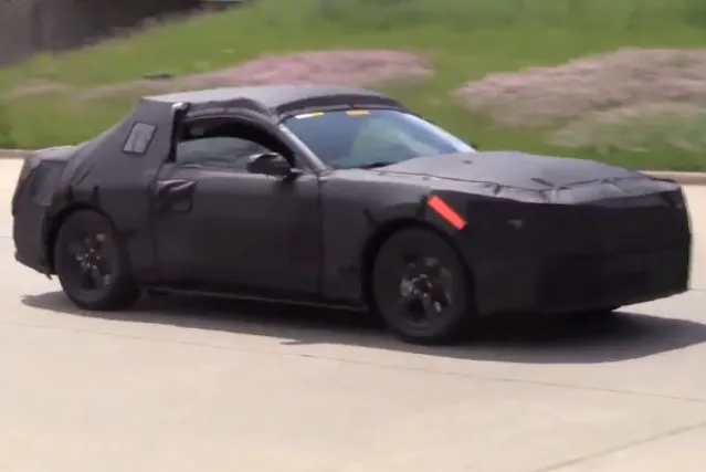 The video allows us to discern a few more details other than what previous stills have. For thing we can tell you this prototype car is a V-8, less than 20 seconds into the video you can hear that distinctive rumble as the car rolls by the camera. While a minor detail, another styling cue may be the location of the turn signals, which appear to be more inboard than on the current model, seen through the camo as the car turns at the beginning of the video.