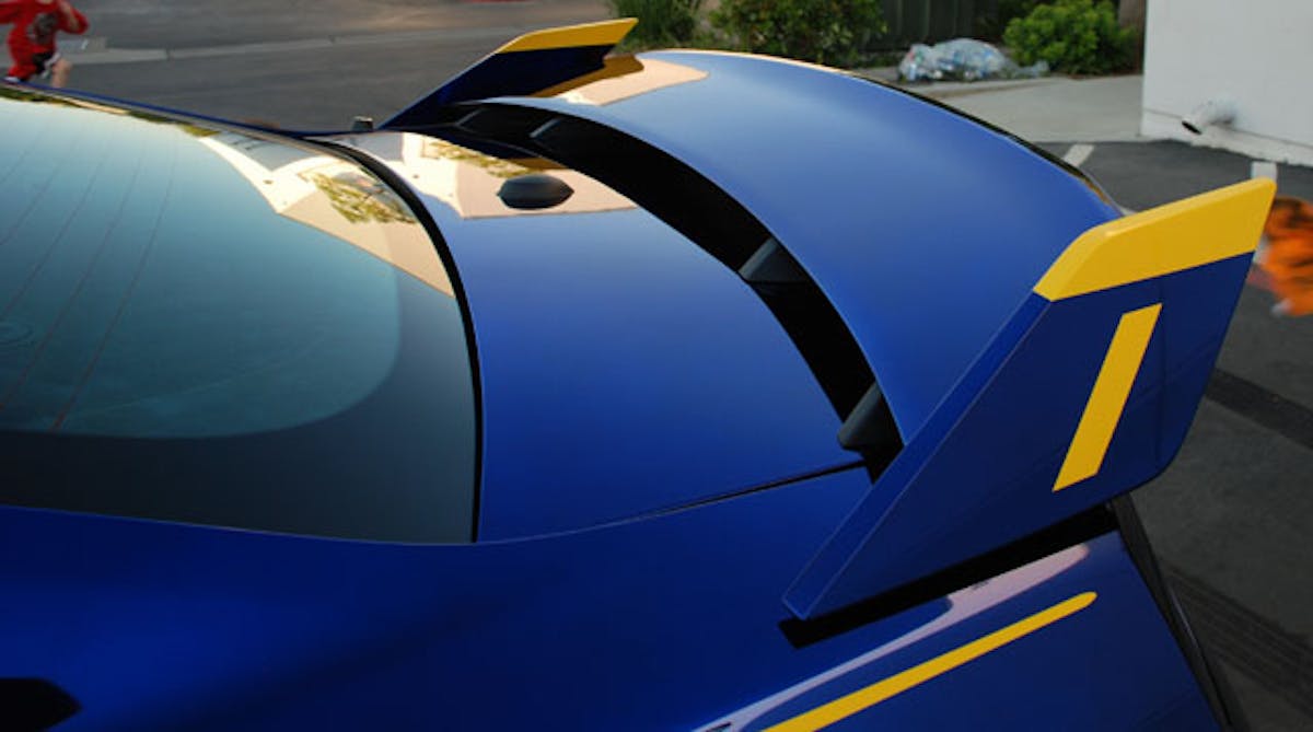 The custom rear spoiler’s vertical tail fins, the screaming yellow gloss accents, inclusion of the Blue Angels script and crest all are drawn from the Navy aircraft. The unique chrome blue paint, comes courtesy of Creations n’ Chrome and is unlike anything available on a production vehicle anywhere in the world.