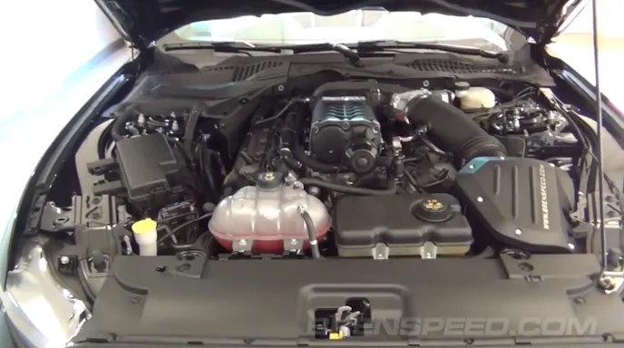 Brenspeed owner, Brent White, shows off the installed supercharger in the company’s latest video. Right now, the Brenspeed Mustang GT has the phase one system installed, but don’t let you fool you. In phase one form, the supercharger is good for a stout 627 hp 530 ft-lbs. That’s adding nearly 200 hp to the stock engine.