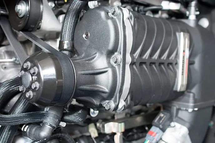 White goes on to detail some things about this supercharger, including that this is an all new kit. While it is still based on the proven, and reliable, Eaton TVS 2.3 rotor pack, this is a completely new supercharger housing, inlet and air intake. The rotor housing has been revised to optimize airflow. These areas were all critical to getting more airflow and power out of the system at low boost levels.