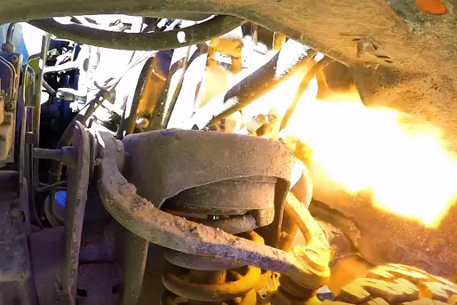 The host of FullMag, Richard Ryan, isn’t just using standard .50 caliber slugs for this mission either. Instead he’s loaded up with armor piercing incendiary rounds specifically built for taking out the engines of vehicle-borne explosive devices, and normally all it takes is a couple of rounds in the block to incapacitate a vehicle. In the pursuit of entertainment though, Ryan instead puts two holes into a cylinder of the running engine via the heads, and high-speed cameras reveal the explosive results of his well-placed shots.