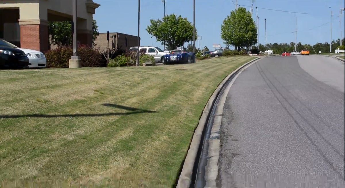 All of that big-block power comes on pretty hard at a low RPM, meaning that maintaining control is of the utmost importance, and the driver just doesn’t seem to have it. From what we can see it doesn’t look like anything really goes wrong with the car,, but for some reason it quickly squirts to the left, up a hill, and smashes into something else. We can’t tell if there’s something on the lawn that gets in his way or he actually smashes into the Tahoe that’s up on the hill. Regardless, a fair amount of damage had to have been done to not only the nose of the car but also the undercarriage. It’s a shame, really, as the car appears to be a quality example of the Cobra kit-cars that are out there, and we’d be willing to bet that this driver regrets his decision to smack the loud pedal. In fact, we’d bet that thought went through his mind as soon as the car started to veer off course. Low-riding Cobras aren’t really designed for off-roading.