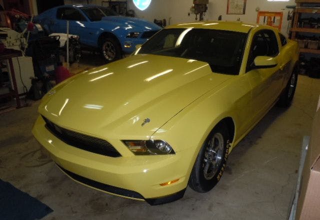 NHRA Division 3 Stock Eliminator racer Jimmy Ronzello recently had the finishing touches put on a brand new 2012 Cobra Jet replica, based around a body-in-white kit from Ford Racing, at George Wright Racing in Carleton, Mich. Ford Racing makes available a wide range of original Cobra Jet components, from chassis components and wheels to the electronics, body parts and graphics, engines and engine components, the fuel system, and more, allowing one to virtually re-create the Cobra Jet down to the last nut and bolt; minus the official Cobra Jet VIN tag, of course. And that’s exactly what Ronzello and George Wright Racing have done with this new ride.