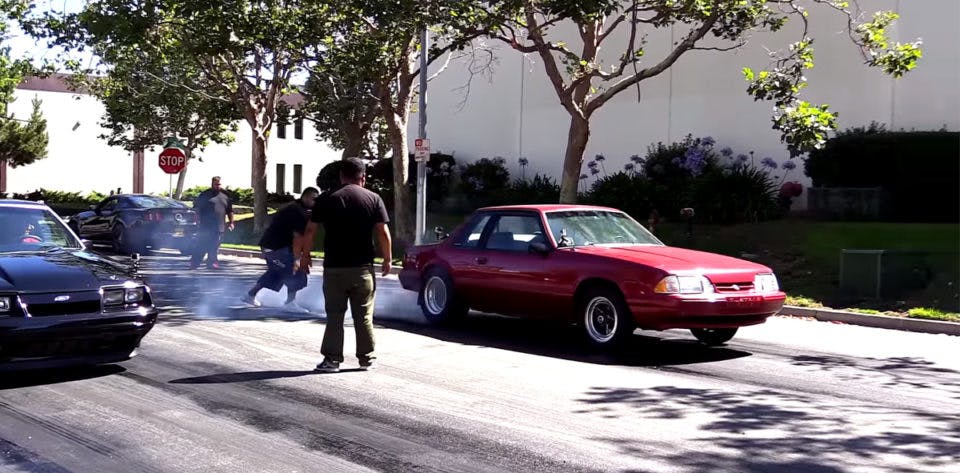 After a show of equally impressive burnouts from each car, the Terminator-swapped black Mustang easily takes the red Coyote-powered Fox. The video is definitely informative for anyone looking to do a performance swap in a Fox Mustang.