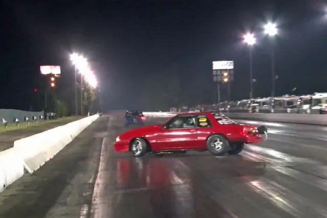 At this past weekend’s Mountain Motor Nationals held at the Maryland international Raceway, X275 racer Dan Whetstine went for one wild ride — almost. The ride itself started out as a run in the right lane against fellow X275 hitter Rich Bruder in the left, and nearly ended with Dan’s machine taking out the left lane wall. Thanks to Steven Auglis and TheRacingVids, we get up-close-and-personal with the near disaster.