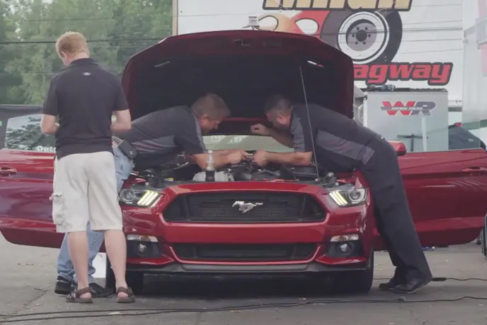 Relying on a ROUSH version of the Eaton TVS 2.3 supercharger, the supercharged 5.0 was the car we really wanted to see make a hit in this video. Modular engines on the whole have always responded well to boost, and the Coyote is no exception. Our own Project Silver Bullet 2013 GT went into the 10s with a ROUSH charger based on the same rotor pack.
