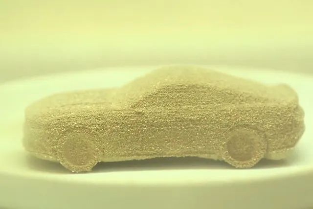 Printing a car made of chocolate takes a little more expertise though, which is where 3D systems comes in. The process of making a chocolate (and sugar candy) model Mustang involved using a printer to print water onto a dry sugar substrate. It does this one tiny layer at a time, until you’ve got a three-dimensional Ford Mustang that you can eat.