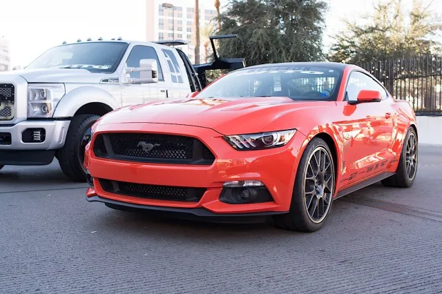 We brought you the scoop on the awesome Hellion 2015 Mustang GT, equipped with a twin turbo system earlier this week. The Competition Orange fastback debuted at the 2014 SEMA show, wearing a pair of Precision turbos, and was making 750 hp to the rear tires at the time of the show. It should be noted that this car has the upgraded Precision 64/66 turbos, standard kits will utilize Precision 62 kits with the 64/66 available as an upgrade. This was all done with the stock 2015 GT internals.