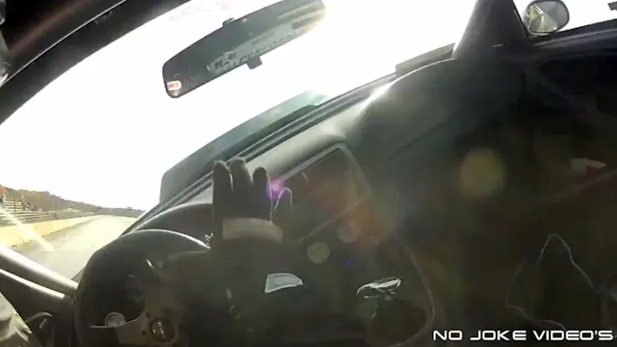 jake1We get a front row seat in-car helmet-cam shot, thanks to the wonders of modern electronics of just what happens when powerful car meets super-sticky racetrack.