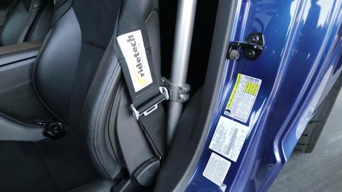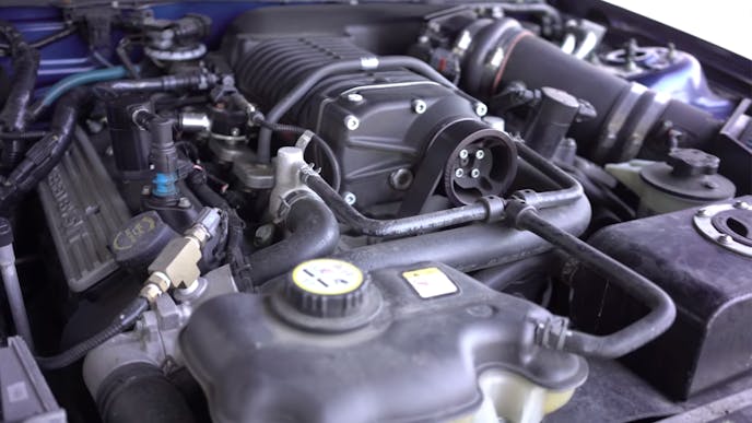 He started by swapping the stock supercharger with a 2.9-liter Whipple and adding a larger intercooler reservoir, a larger heat exchanger, and an improved radiator from CSF. Josh also basically completely overhauled the undercarriage with mods, including BMR Suspension tubular A-arms and multipoint subframe connectors; KW Clubsport coilover shocks; and a one-piece aluminum driveshaft. He also installed a Ridetech Tiger Cage, which is a bolt-in roll cage that was not custom fabricated to the car.