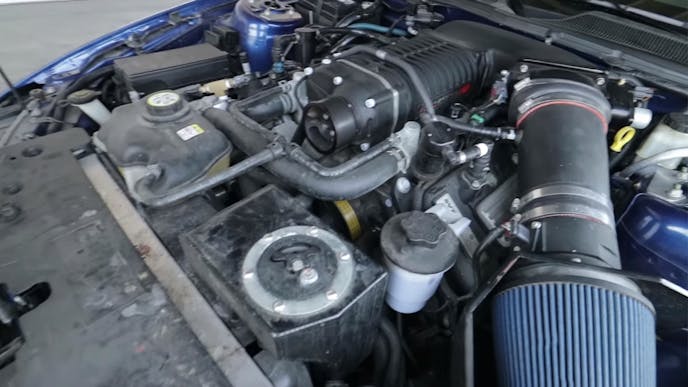 Josh drives his Mustang all the time. The engine compartment isn’t spotless because this is not a show car that rides a trailer from track to track. Josh drives it, Josh gets it dirty, and Josh loves it.