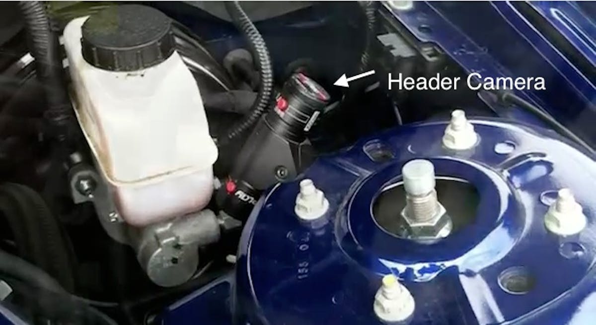 The video was shot with multiple camera angles, looking out the front window, looking out the back window, one on the driver, one outside the car, and one on the speedometer. Most interesting of all to us though was the header cam. This car is still equipped with the stock stainless steel headers that came on it from the factory. While the full run video shows multiple angles of a 174 MPH run, and one shot of the glowing header, the header camera video might tell the story of what’s going on under the hood even better.