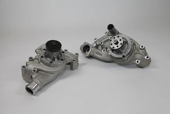 The water pumps are CNC machined 356 aluminum castings heat treated to T-6 specs. – Troy Hooker