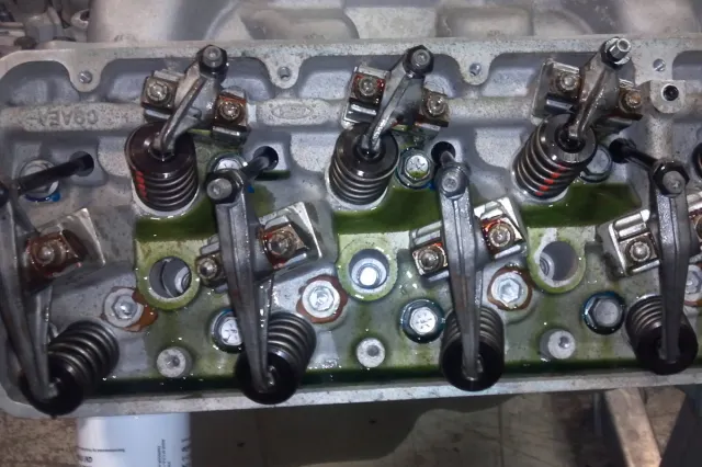 Noting a unique feature of the Boss 429, Simone opts to retain the original dry-deck OE Boss 429 “Cooper” ring head gaskets, instead of welding the heads and converting them to use modern gaskets. Cooper rings are a far cry from modern head gaskets. They are a folded stainless compression sealing “ring” that is set in a machined groove around each individual chamber in the cylinder head. The remaining water and oil passages between the head and the block are sealed individually as well, using small neoprene O-rings set in counterbores – hence the dry-deck designation.