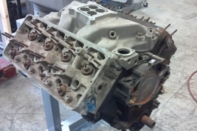 The engine in this video uses a stock C9AE-E Boss 429 block that’s been bored to a 4.400-inch final size. The aforementioned repaired stock casting cylinder heads carry the C9AEA casting number, while the connecting rods are C9AE-B Boss 429 “T” pieces using a 6.605-inch center-to-center dimension. Simone also used the OE Boss 429 forged steel crankshaft with its 3.590-inch stroke in the build. Pistons are from Diamond Racing, rings are from Total Seal, and bearings are from Clevite.