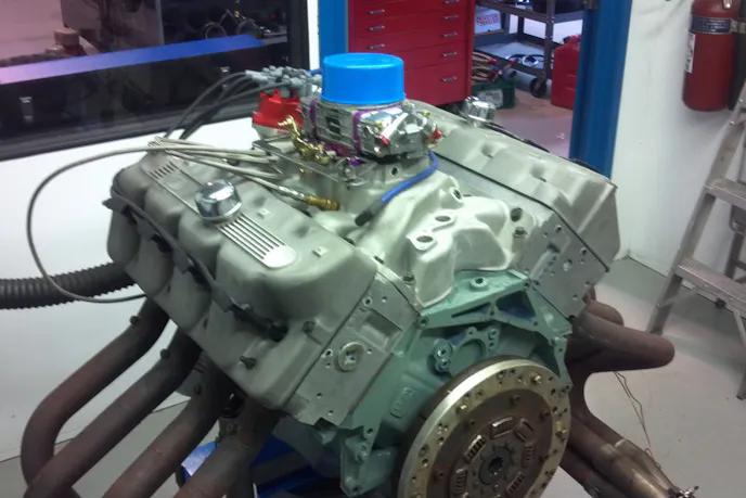 The engine in this video uses a stock C9AE-E Boss 429 block that’s been bored to a 4.400-inch final size. The aforementioned repaired stock casting cylinder heads carry the C9AEA casting number, while the connecting rods are C9AE-B Boss 429 “T” pieces using a 6.605-inch center-to-center dimension. Simone also used the OE Boss 429 forged steel crankshaft with its 3.590-inch stroke in the build. Pistons are from Diamond Racing, rings are from Total Seal, and bearings are from Clevite.