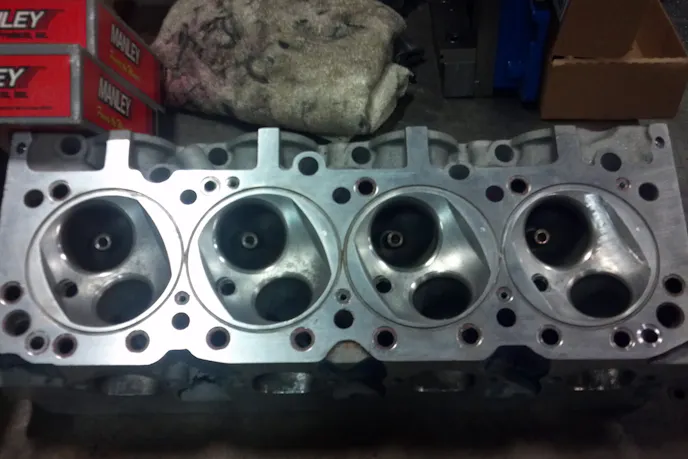 Simone explains that the castings are made from 355 aluminum, with only a T-5 heat-treat spec – which requires a very specific, nearly “cold” welding process to repair properly. Modern aluminum heads are made from a far more dense 356 aluminum with a much tougher T-6 heat-treat spec. Knowing the difference is key. When weld repairs are done properly, he can then install new valve seats if necessary and perform all other critical valve/seat and guide work without fear of the heads springing a leak when they’re complete and on the engine.
