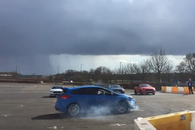 It’s difficult to tell what kind of Mustang it is we’re looking at, as the Focus RS driver is antsy to get on the Silverstone track, giving the gas pedal impatient stabs that result in the trademark muffler gurgle Ford worked into its hot hatch. Judging from how easily the Mustang moves around its line though, we’re going to guess it’s the 430 horsepower V8 at work in this video.