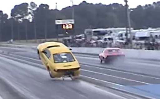 The driver does a great job keeping things from getting worse and keeps the car off the wall. Check out this video from Urban Hillbilly that highlights what happens when wheelie bars go on strike.