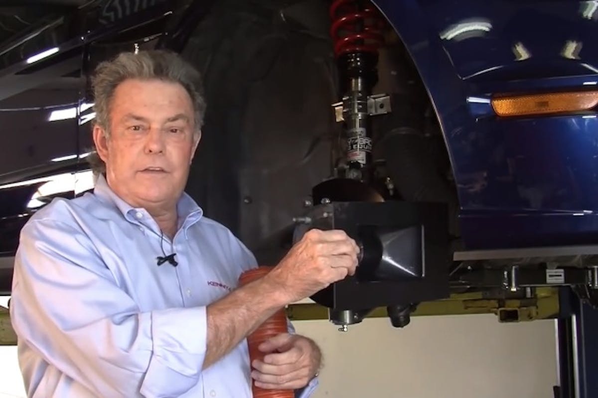 KB also uses a 3-inch diameter hose for brake cooling ducts instead of a 4-inch. He has two reasons for doing this. Th is allows them to somewhat squash the end of the hose that will face the rotor in order to get more air flowing to the eye of the rotor, rather than its face. This is easily achieved with this size hose. Brown also says that the 3-inch hose is easier to route around various equipment, accessories, and suspension components, making installation and maintenance easier.