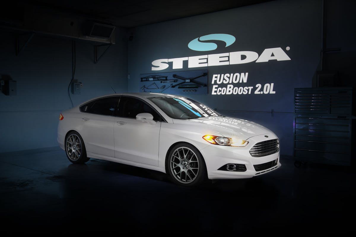 What started as a daily driver for one of our company executives turned into one of our favorite vehicles here at a the shop. —SteedaAnd when our friends at Steeda Autosports took delivery of its own 2.0-liter Fusion shop car, the company knew that with only a few simple bolt-on modifications, this four-door sedan could easily be transformed into a fun daily.
