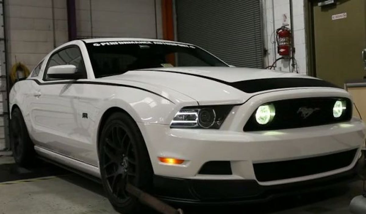 The Mustang RTR package comes in several flavors, though the base package is what we’re working with here. In addition to exterior upgrades that include front and rear spoilers, new wheels and RTR badges, the Spec 1 Mustang RTR gets the aforementioned custom mufflers and a 1-inch lowering kit as well. We think the Mustang RTR looks best in white, and Performance Autosport agrees, putting this white-and-black example up for tuning on its dyno.