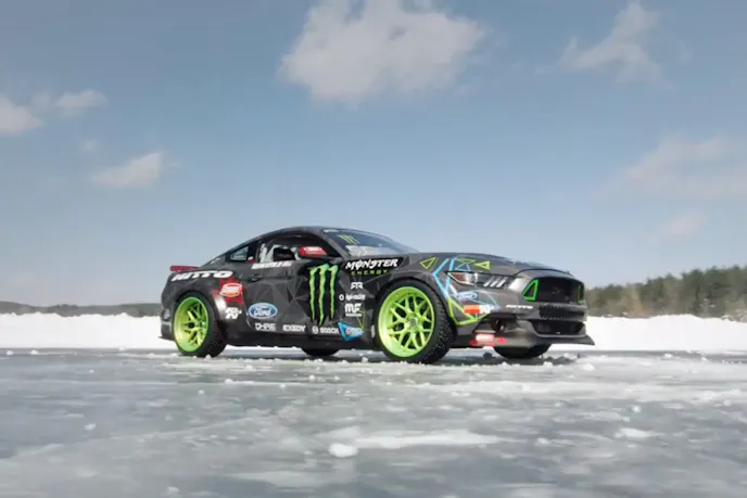 Of course, with it being winter, Gittin doesn’t just take his Mustang out for some fun on the asphalt. Instead, he’s kicking it on a frozen lake, just another day at the office for the Mustang Madman. Gittin takes the car around the lake the only way he knows how -sideways.