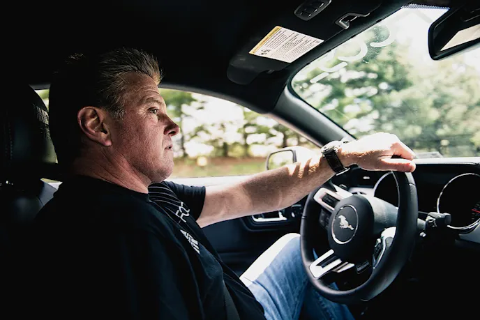 After checking out the car, and installing a couple of parts, Foose takes Dugan for a thrill ride in the car. Needless to say smokey burnouts and big smiles are the result, including Foose doing some doughnuts in the American Muscle parking lot prior to the car’s reveal in California back in May.