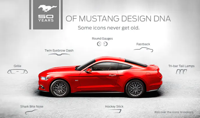 When spy photos started coming out of the 2015 S550 Mustang, and then the big reveal, we heard similar cries, and imagine that we’ll continue to hear them for quite some time. The fact remains that the design must evolve, or lose sales and thus lose justification for the model to continue being built. The 2015 in-spite of it’s revolutionary new look, still retinas many Mustang hallmarks, and Ford has released several drawings, videos, and interactive graphics to demonstrate key Mustang DNA that has been carried over.
