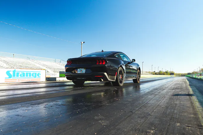 Unlike other 9-second builds we’ve seen, Justin Starkey, owner of VMP Performance, kept this one as minimal as possible. The test vehicle was a 2024 Mustang GT with a Nite Pony package equipped with the optional Brembo brake package. This configuration put the overall weight roughly the same as a Performance Package Mustang.