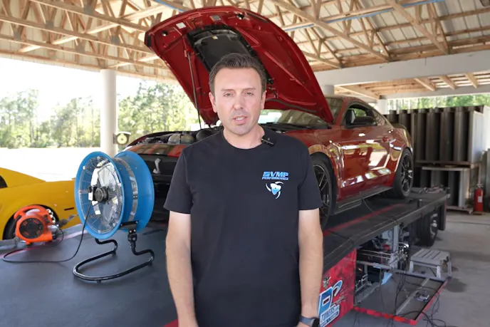 The previous dyno session established a strong baseline of 908 wheel horsepower and 705 lb-ft of torque with VMP’s full Apex Predator system (intake, throttle body, lid, intercooler, and Apex Predator supercharger) running on 93-octane pump gas with a booster. For the E85 test, VMP’s founder, Justin Starkey, explained the car was already prepared with larger ID1300 fuel injectors and fuel pump voltage boosters, anticipating the move to ethanol.