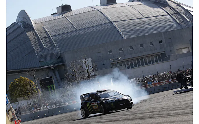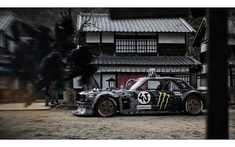 In addition to the impressive drift display in his rallycross-spec Ford Fiesta we reported on earlier this week, Mr. Block was also able to steal the Hooncorn V2 from inside the Toyo display booth and take it for a Japanese period correct photo shoot as well. The former FIA World Rallycross driver traveled to Edo Wonderland for the shoot.