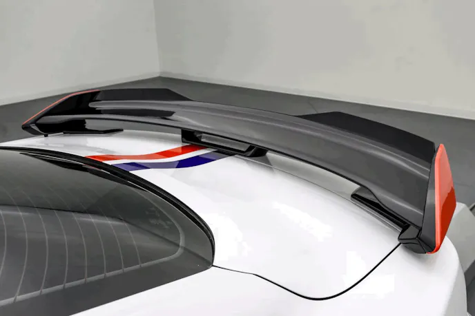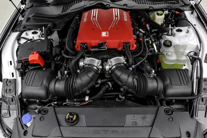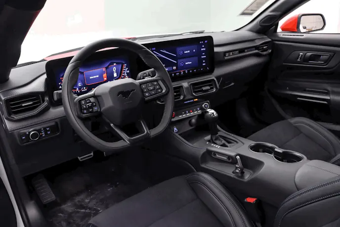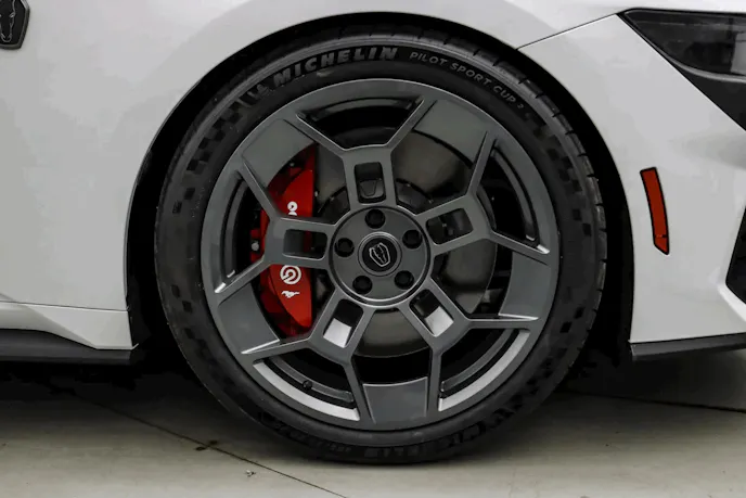 To keep that power in check, the car also benefits from GTD-style wheels wrapped in sticky summer tires (see sidebar below). Meanwhile, its aggressive rear wing echoes the sort of performance-honed aero upgrades on the Mustang GTD.