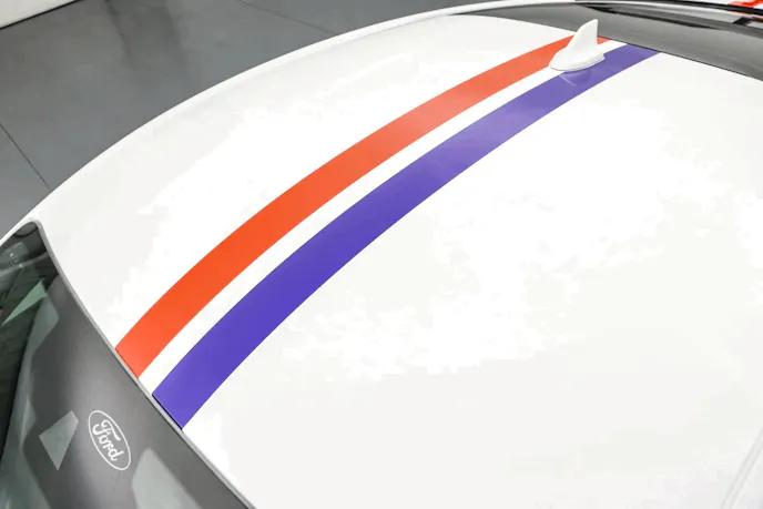 More than just a red, white, and blue sticker package, the upgrades extend under the hood where Long McArthur turned up the heat courtesy of a ROUSH Performance TVS 2650 supercharger system. That output puts this tribute within striking distance of the GTD’s factory 815 horsepower output.