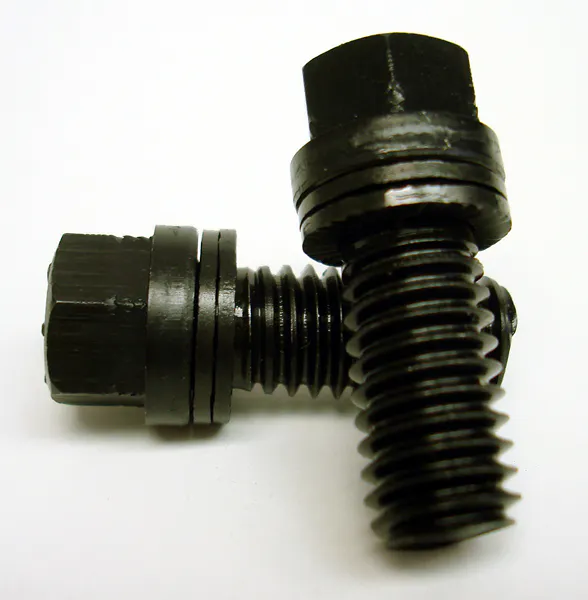These PROFORM header bolts are assembled using a set of factory installed super hard wedge-locking washers, so there are no additional components. Once correctly torqued, the washers’ serrated teeth grip the bottom of the bolt head and the top surface of the header flange. This system prevents rotational movement of the bolt due to the wedge-locking tension created by the two washers interfacing cams. Engine vibration actually increases the wedge locking tension, keeping the bolt secure. When removing the headers, these PROFORM header bolts can be un-tightened with a normal wrench.
