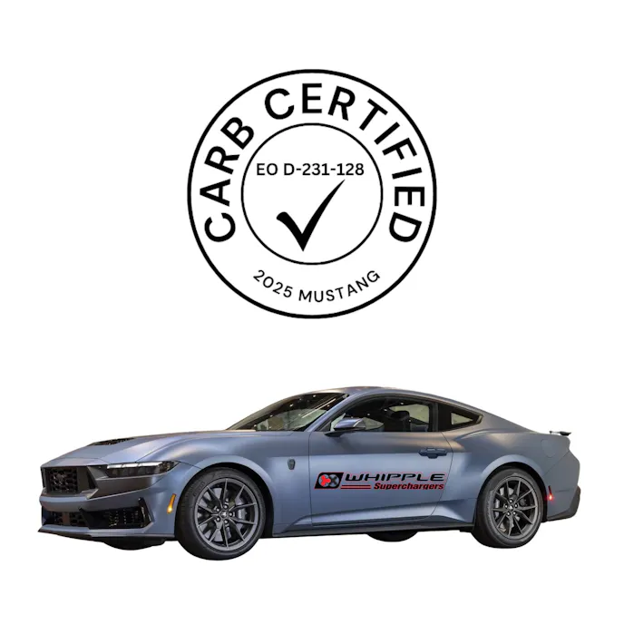 Whipple Superchargers systems for the 2025 Mustang GT and Dark Horse are officially 50-state legal, thanks to California Air Resources Board Executive Order D-231-128. (Photo Credit: Whipple Superchargers)