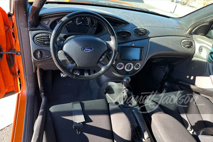 In the desert city of Scottsdale, AZ, Mother Nature seamlessly dripped a drop of its orange-hued sunset onto the stage of the Barrett-Jackson auction room. In a gritty showdown of bidders, a highly customized 2001 Ford Focus RS Custom Coupe turned heads and emptied wallets, selling for a solid $35,200. Being on the lookout for unique cars to share on Ford Muscle, as well as being a Ford Focus owner myself, this is a build I needed to share.