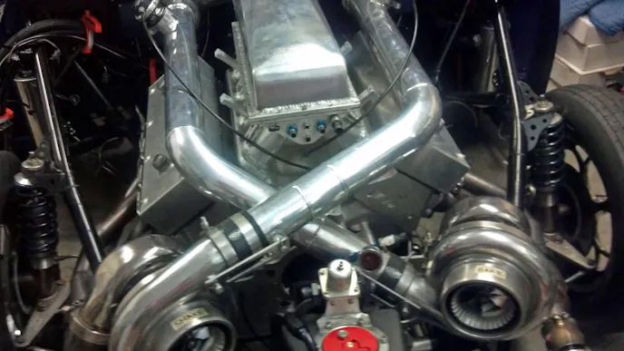 Bill’s new engine will displace 438 cubic inches and will carry the same Visner Engine Development Yates-style cylinder heads and custom sheetmetal manifold that was atop the 8.2 bullet, and he expects to make substantially more horsepower with the new combination. Since the old setup ran an astounding 4.14 at 179.99 MPH, Devine is excited to see what it will do with the new setup. The car will be running a set of Bullseye Power’s 83mm “BatMo” turbochargers in the nose (instead of the 80’s it ran before), relies on alcohol for fuel, and Devine is one of the only competitors to continue racing with a Liberty’s Gears 5-speed transmission.