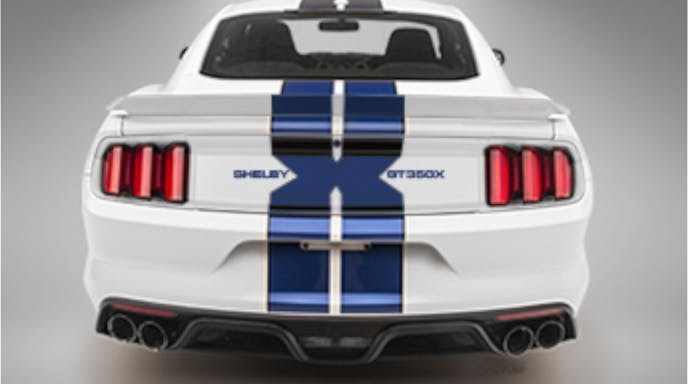 • Brushed-aluminum GT350X grille emblem• Color-coded Lightning Blue “supercharged” side rocker stripes